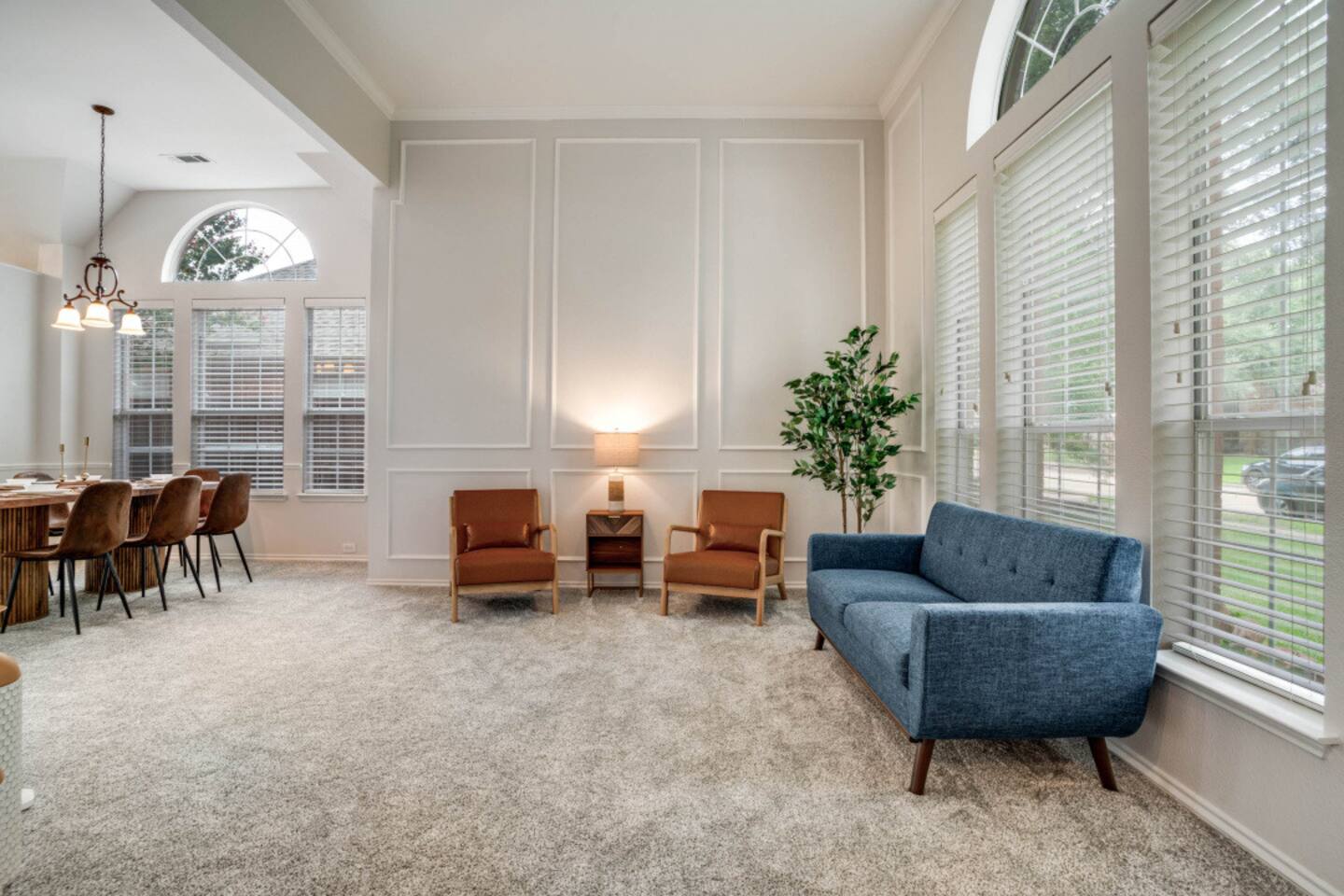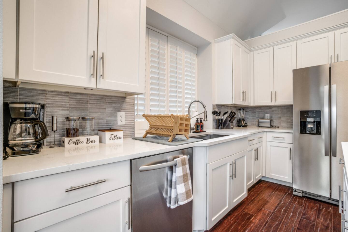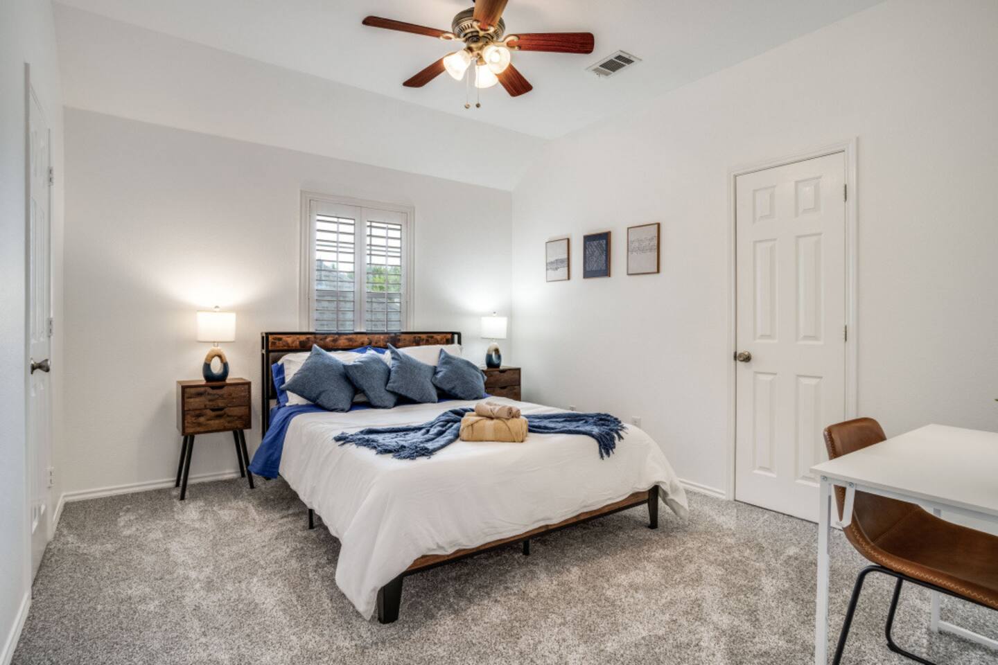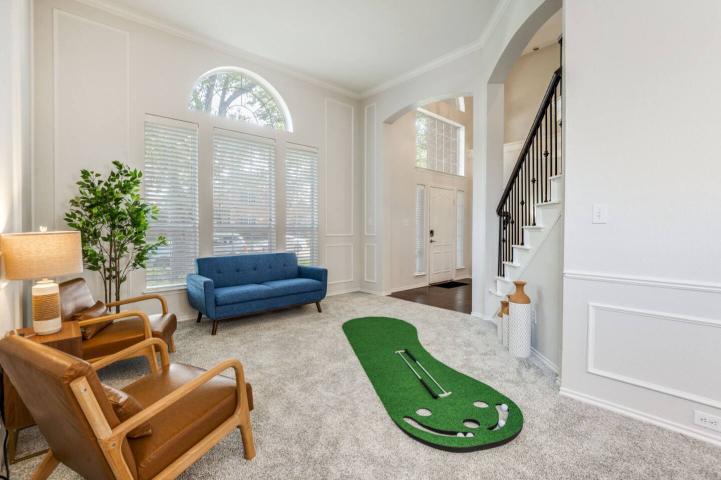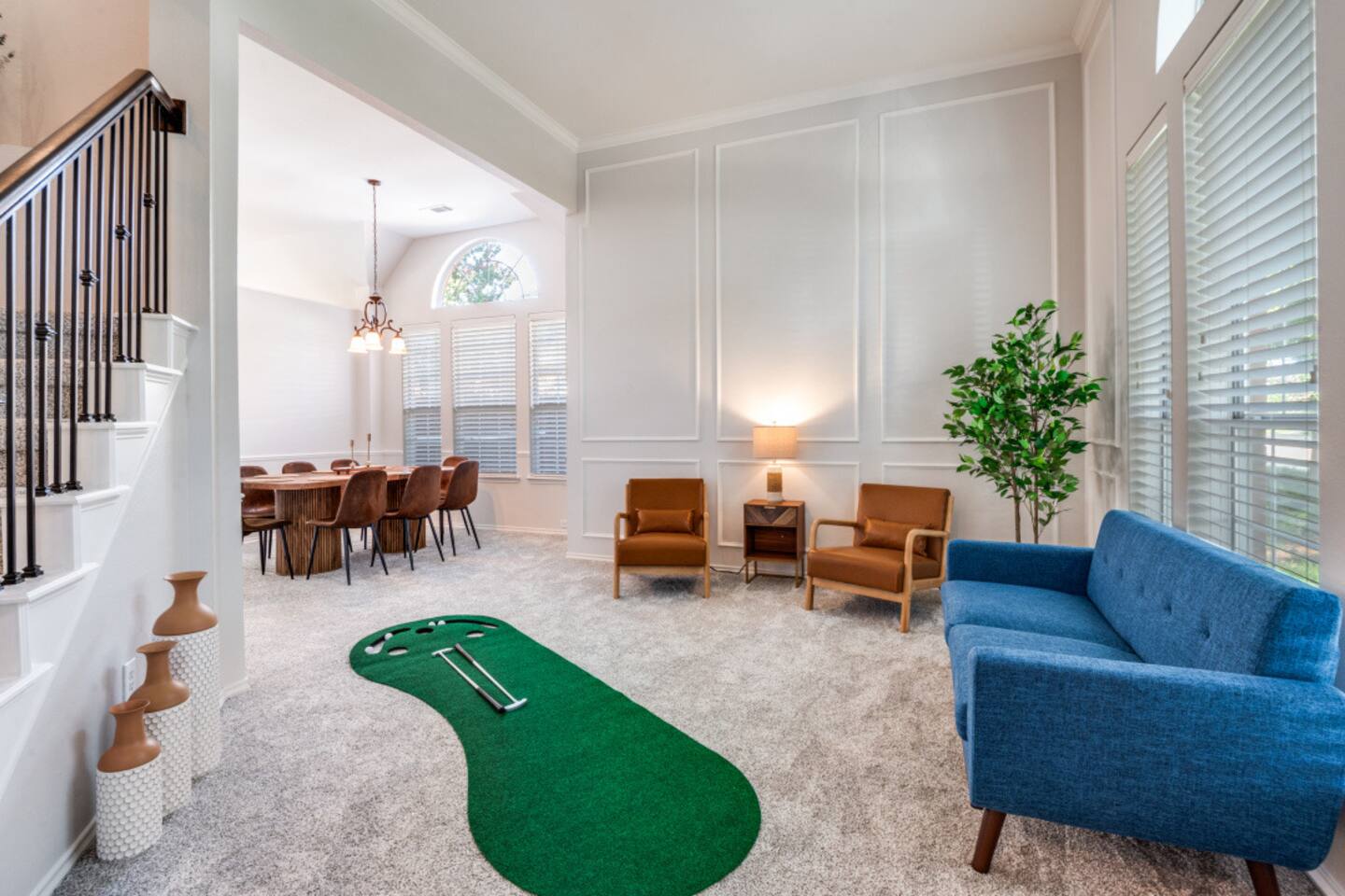 Escape to this charming 2,500 sq ft home, where modern comfort meets laid-back style. Designed for families and groups, the house offers a mix of fun, relaxation, and convenience. Enjoy a seamless check-in with your personal smart lock code, then relax in the heated spa (complimentary) and pool (heating available for an extra fee), or challenge your group to a game of foosball or board games in the comfortable living spaces. Amenities & Features -Heated Pool & Spa: Relax in the spa or cool off in the pool, surrounded by comfortable seating and a gas fire pit. Both the pool and spa are host-controlled. Just send us a message when you’re ready to soak! The complimentary spa runs in 6-hour intervals (5 hours of active use and a 1-hour break to refill to optimal levels). Entire pool heating available for an additional fee when air temperatures are above 50°F. Complimentary pool towels are provided. A Quick Winter Note: ❄️ To keep our pool and spa in top shape, the system features an automated "Safety Freeze Mode." If the air or water temperature dips below 42°F, the heater will shut off so the system can focus on circulating water to protect the plumbing. If you're visiting during a cold snap, please keep an eye on the forecast, as heating will be unavailable until temperatures rise back up! -Smart Lock Entry: For your security and convenience, access to the home is controlled by a smart lock. Your unique access code will be provided to you directly. -Game-Ready Spaces: Get competitive with a foosball table in the living room and a variety of board games in the cozy loft area. -Fully Equipped Kitchen: Cook with ease using the provided spices, coffee, and tea. The kitchen features a breakfast nook for 4 and a bar area with two stools, along with a full cocktail mixing station and recipes. -Outdoor Fun: A gas fire pit and a fully-equipped gas grill are ready for your BBQs and s'mores nights. -Convenient Amenities: A full laundry room with a washer, dryer, and supplies, plus high-speed Wi-Fi throughout the house. Sleeping Arrangements Rest easy! Our home is designed to comfortably sleep up to 8 guests across its 4 bedrooms and 2.5 bathrooms, each with a private closet. 🛏️ Master Bedroom (1st floor): King bed, smart TV, and a dedicated workspace with a desk, chair, and lamp. 🛏️ Bedroom 2 (2nd floor): Queen bed and a dedicated workspace. 🛏️ Bedroom 3 (2nd floor): Queen bed. 🛏️ Bedroom 4 (2nd floor): Two twin beds. More Details -Living Room: Smart TV, foosball table, board games, and comfortable seating. -Loft Area: Golf Putting Green and comfortable seating. -Dining Areas: A main dining table that seats 8 and a breakfast nook that seats 4. We believe a great stay is about more than just a place to sleep—it's about the memories you create. Our home combines thoughtful amenities with a comfortable and convenient setting, perfect for family getaways, special celebrations, or a relaxing escape with friends. For our corporate guests, we've ensured every detail is in place to make your trip both productive and comfortable. We're always here to help. If you have any questions or need anything at all, please feel free to reach out. We look forward to helping you create an unforgettable experience!